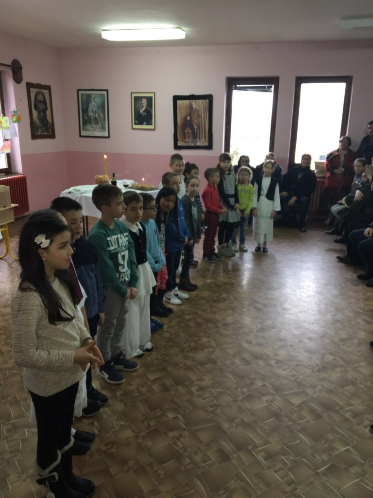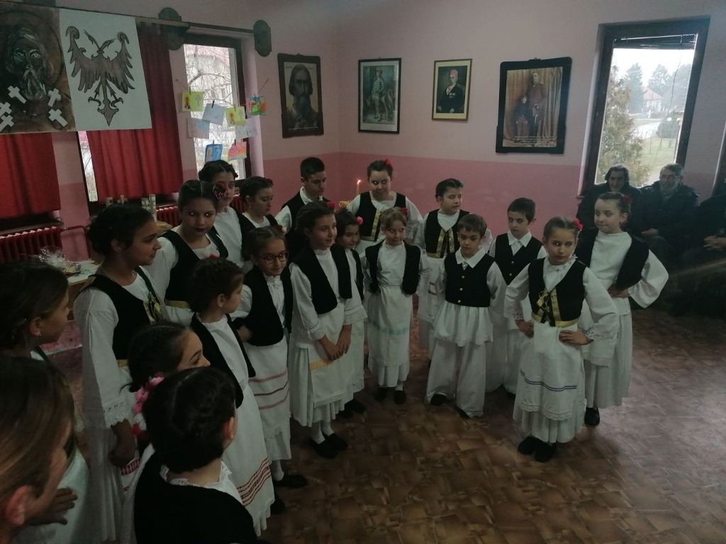 У духу радости прославили смо и ове године школску славу Светог Саву. Госте је поздравила директорка школе Дарина Милић, а након резања славског колача, свештеник Драгољуб Ердељан је говорио о значају наслеђа Светог Саве и пута просветитељства, мира и љубави. Пригодан програм припремили су ученици уз помоћ вероучитеља Ђуре Родића и наставнице музичке културе Теодоре Чукељ. Лепим речима и рецитацијама представили су се и најмлађи, прваци. Школски хор је певао Светосавску химну, а игром су сцену улепшали чланови ЦТКУ "Небојша Недимовић". Сценографију је својим радовима оплеменила наставница ликовне културе Ивана Тихомировић. Породица Киш је ове године прихватила кумство.